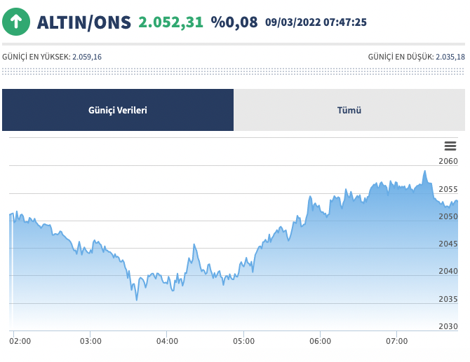 Ukrayna ve Rusya arasındaki savaş hala devam ediyor ve bunun etkileri direkt olarak değerli metallerin üzerinde görülebiliyor. ONS Altın fiyatı aylar sonra yeniden tüm zamanların rekorunu kırmayı başardı ve fiyat an itibarıyla 2.053 doların üzerinde seyrediyor.