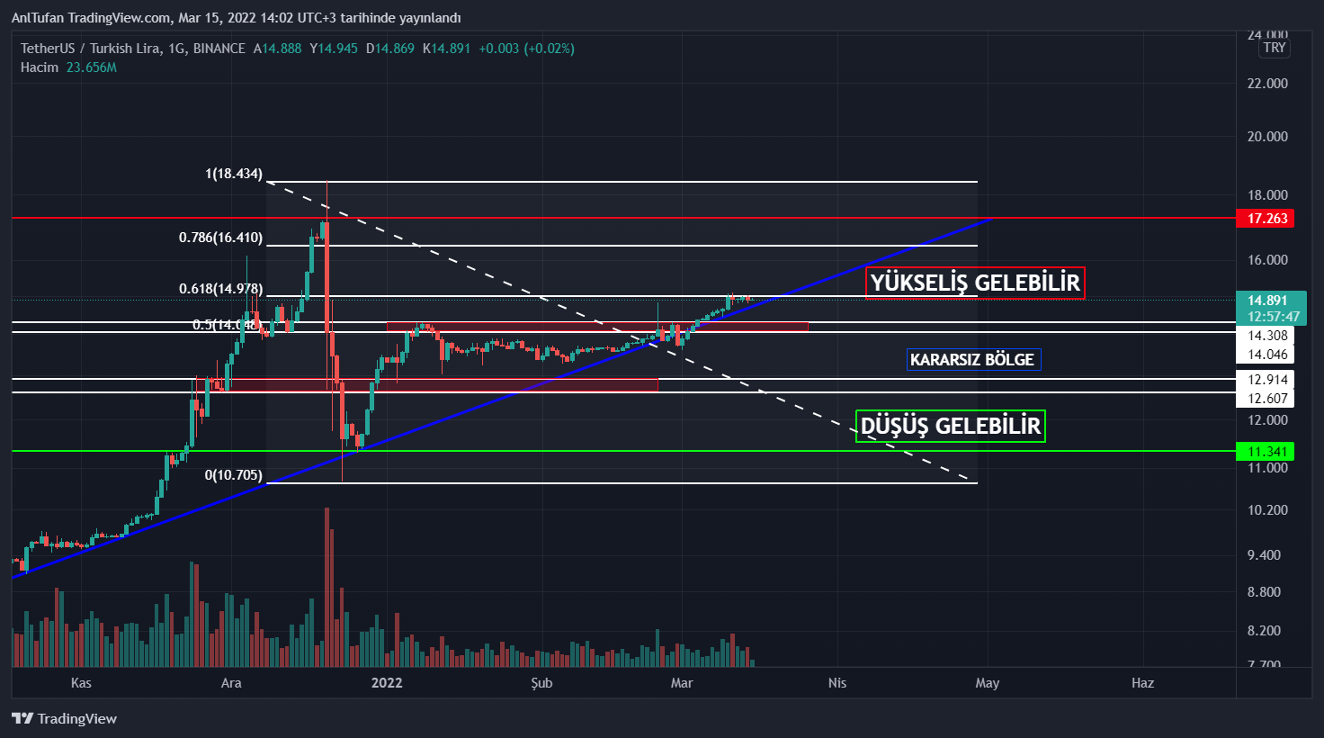 15 Türk lirasını aşamaması durumunda ise ilerleyen günlerde USDT’nin kademeli bir şekidle 14.20 – 14.00 Türk lirası seviyesine bir geri çekilme yaşayabilir.