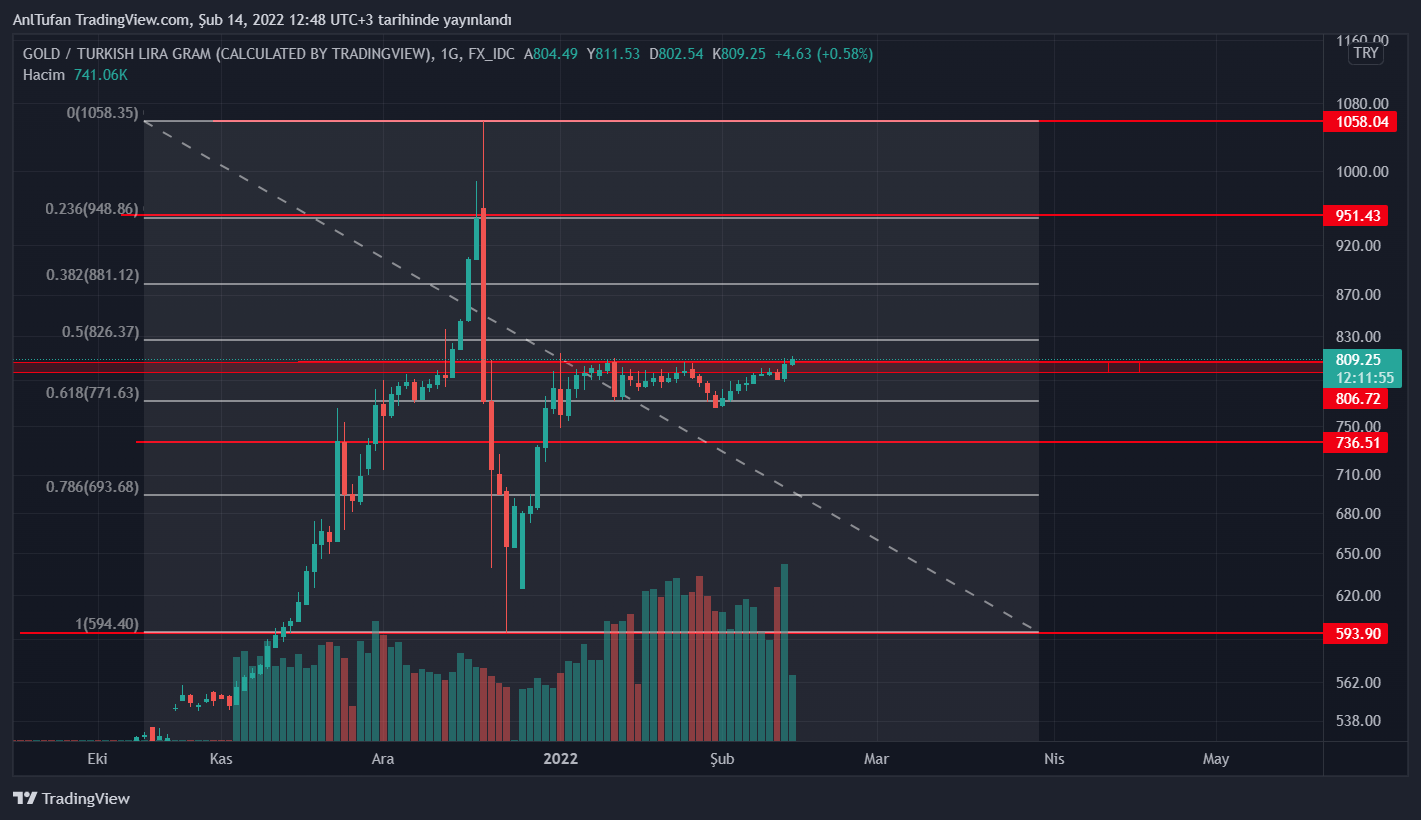 Yayın saati itibariyle 809 Türk lirasına ulaşan gram altın, 795 – 806 Türk lirası direnç aralığının üzerine çıkmayı başarmış durumda. Halen günlük kapanışını yapmamış olan altın, kritik seviyede bulunuyor.