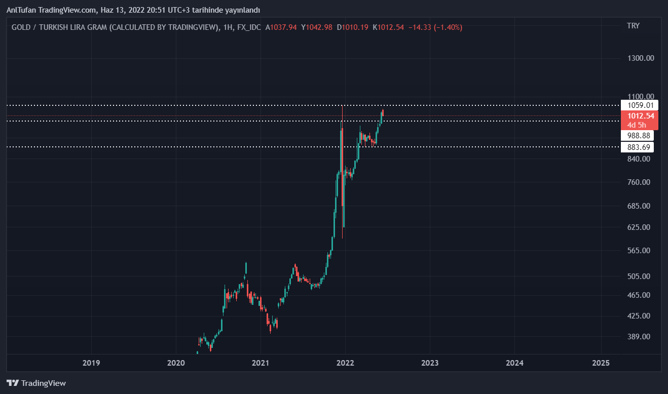 İlerleyen günlerde 1000 Türk lirası seviyelerine gerileyebilecek olan gram altın, bu seviyeden alacağı tepkiye bağlı olarak 1050 Türk lirasına ulaşabilir.