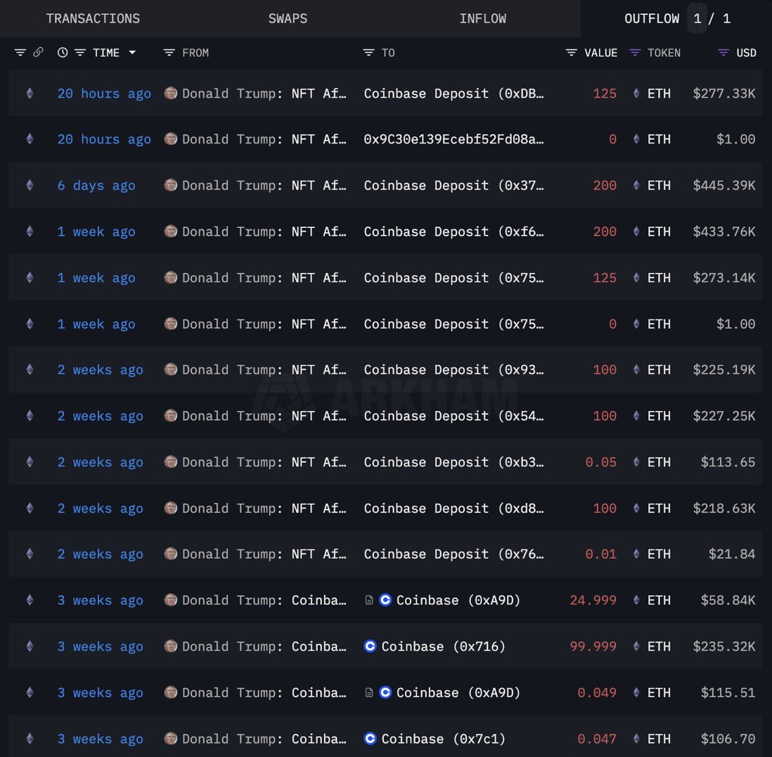 Amerika Birleşik Devletlerinin (ABD) eski başkanı Donald Trump, son saatlerde kripto para sektörünün gündemine geldi. NFT koleksiyonu nedeniyle dönem dönem kripto varlıklar ile haşır neşir olan Trump, bugün ETH satışı gerçekleştirdi.