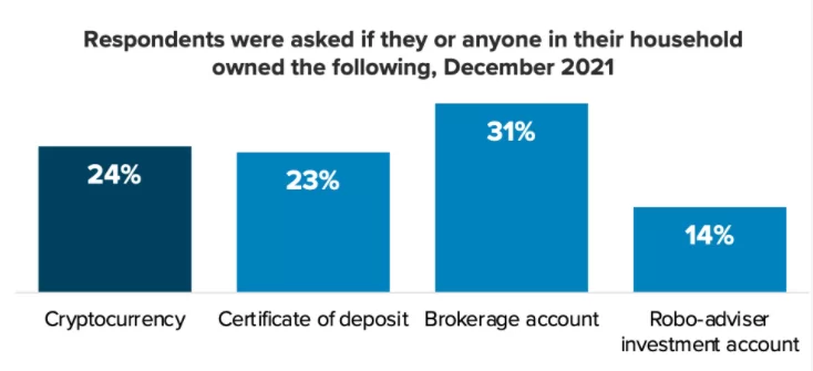 23-25 Aralık 2021 tarihleri arasında gerçekleşen ankete göre ABD’li yetişkinlerin %24’ünün Bitcoin ve kripto paralara yatırım yaptıkları öğrenildi.