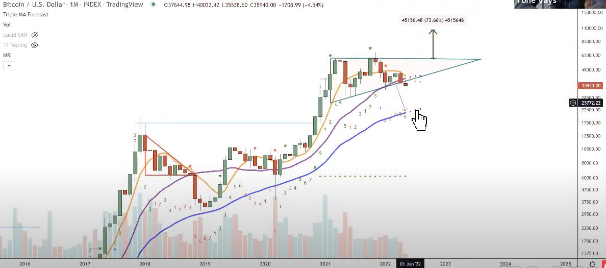 Bitcoin‘in aylık kapanışını yapmadan önce üçgen formasyonunun içine geri dönmesi gerektiğini aktaran Vays, tam ters senaryoda bu düşüşlerin başlangıç olduğunu söylüyor.
