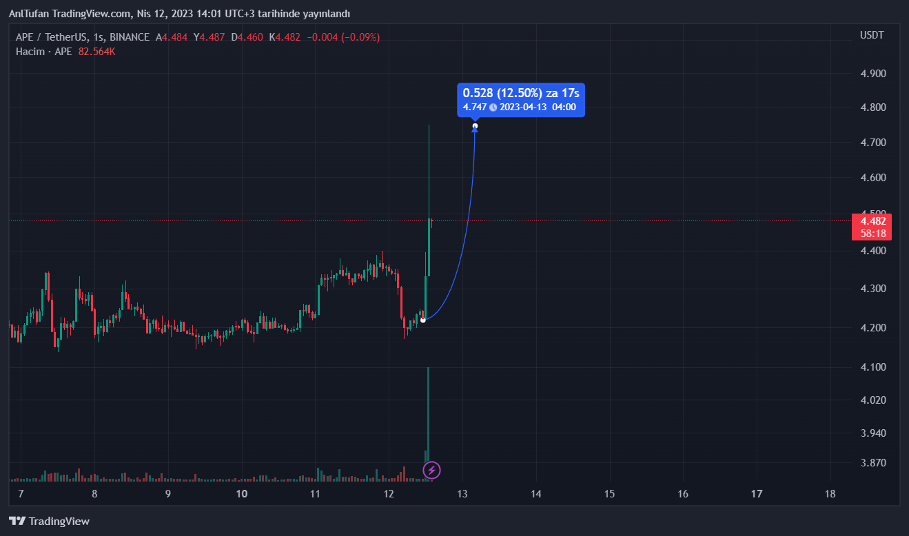 Sadece son çıkan haberler ile birlikte ilgiyi üzerine çekerek yüzde 12’den fazla yükseliş yaşayan APE, son dakikalarda ise yüzde 5’den fazla düşüş yaşadı.