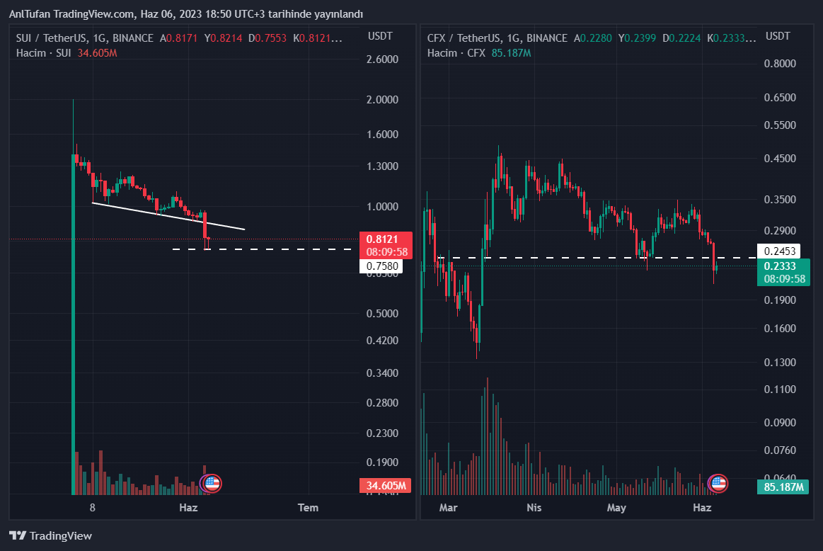 CFX ve SUI’nin son hareketlerine baktığımızda, SUI’nin son süreçten ne kadar çok etkilendiği net bir şekilde görülebiliyor.