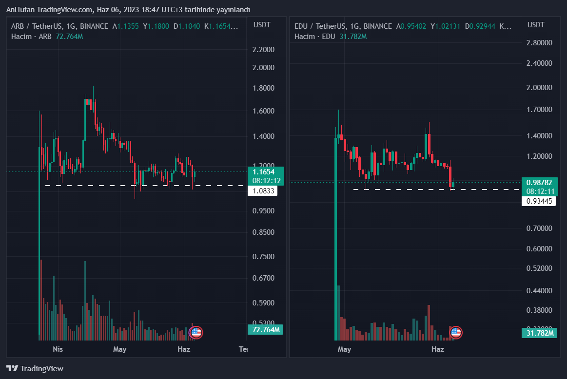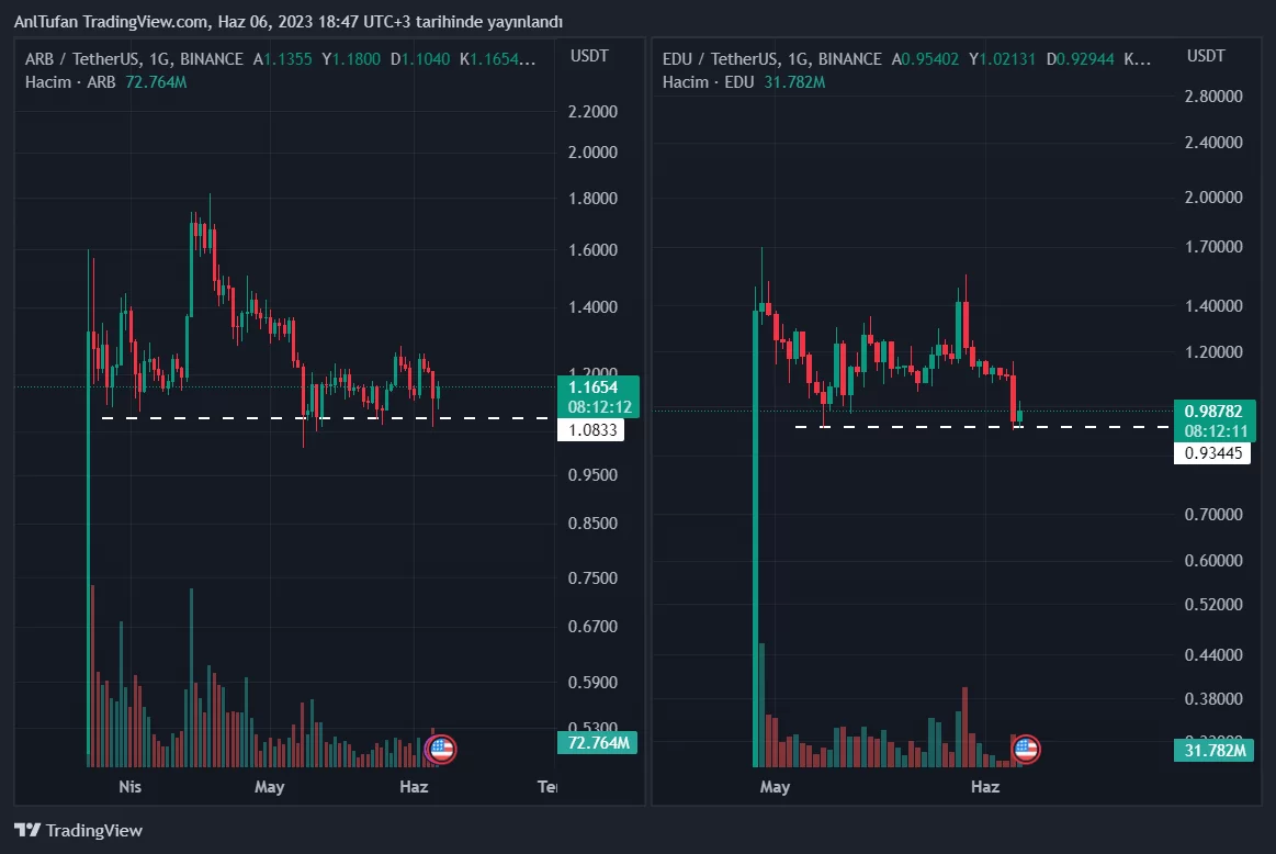 ARB ve EDU’nun kısa vadede sert yükselişler yaşayabilmesi için lider kripto para birimi Bitcoin‘in 27 bin dolar seviyesini aşması gerekiyor.