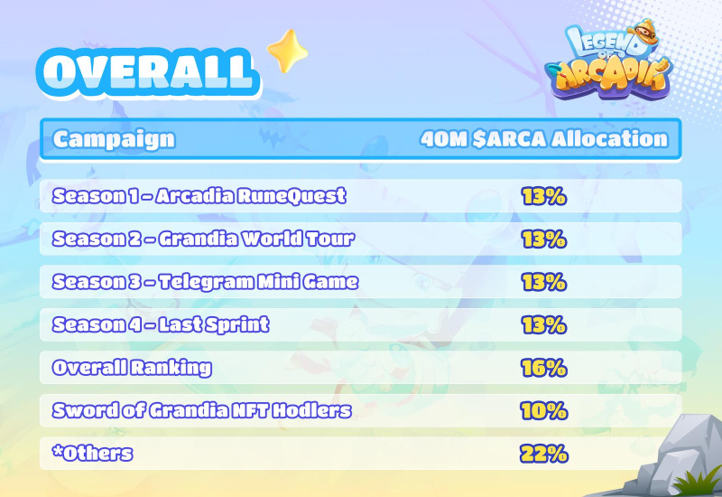 LoA, Gacha Puanı miktarına göre farklı rütbe kademelerine ayrılacak yedi havuz arasında dağıtılacak toplam 40.000.000 $ARCA token arzına sahip olacak.