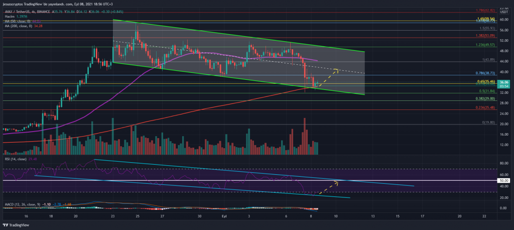 Bu kanalın alt bandında hem fibonacci golden pocket hem de MA200 seviyesi olan 34,29 dolar destekleriyle karşılaşan ve yükselişe geçen AVAX’ın kanalın orta bandı olan 40 – 41 dolar aralığına doğru yükselmesi bekleniyor.