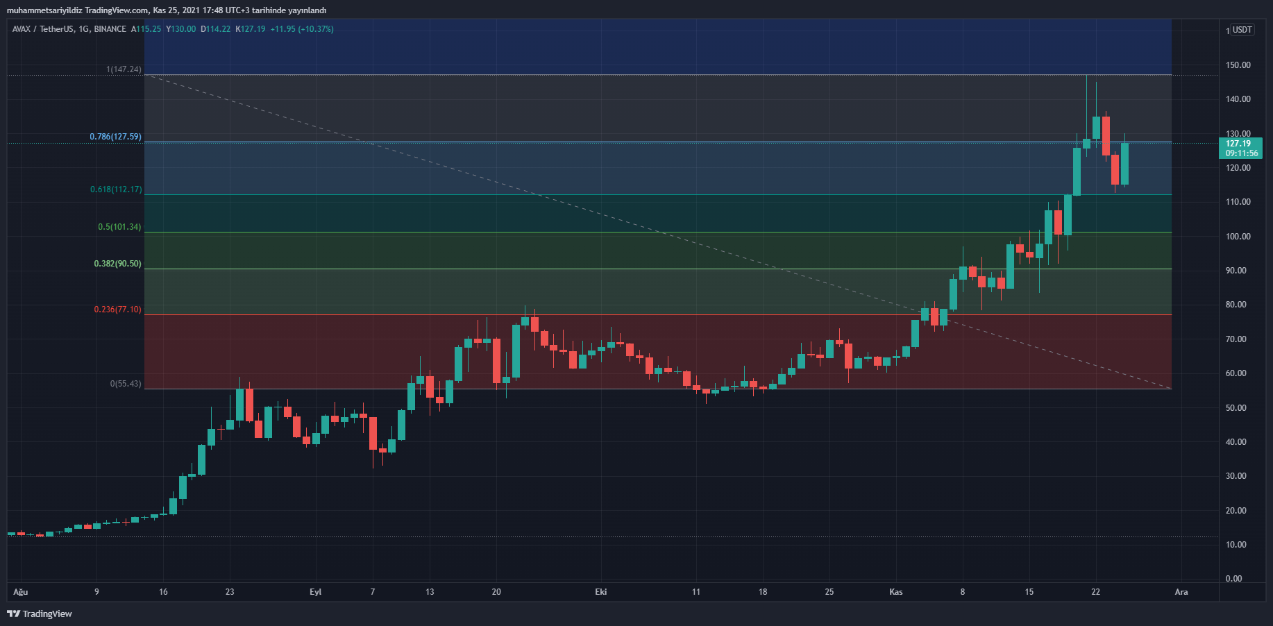 Ünlü kripto para analisti Benjamin Cowen ise popüler kripto para biriminin parabolik yükselişinin bitip bitmediğini yorumladı. Analist, 112 dolara kadar çekilen AVAX’in daha da düşüp düşmeyeceği sorusuna son videosunda yanıt ver. AVAX fiyatı hafta sonunda 147 doları görmüş ve BTC ile ETH düşerken bütün bunlara meydan okumuştu.