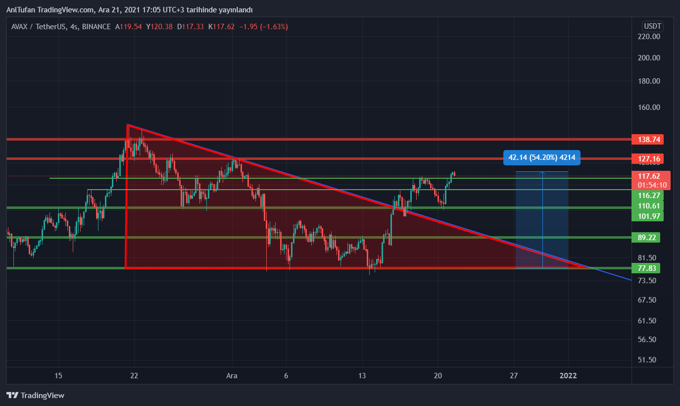 Yayın saati itibariyle 117 dolar seviyelerine ulaşan AVAX’ın kritik seviyelerine gelin birlikte göz atalım: