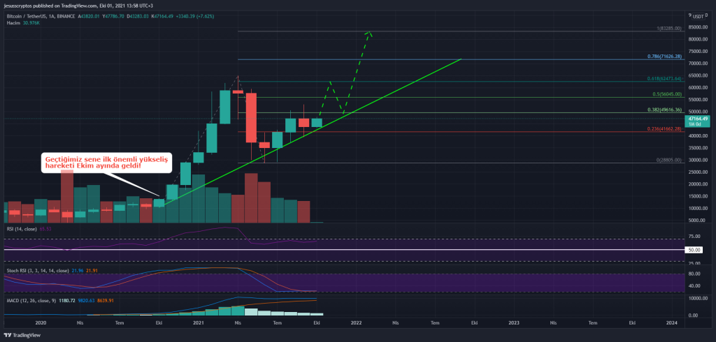 Geçtiğimiz sene Ekim ayında başlayan boğa sezonunun bu sene Ekim ayında yeniden kıvılcım oluşturup oluşturmayacağı merak ediliyor. BTC ise yeni ayın ilk gününden 47.000 doları görerek bu yükseliş beklentileri karşısında yatırımcıları umutlandırıyor.