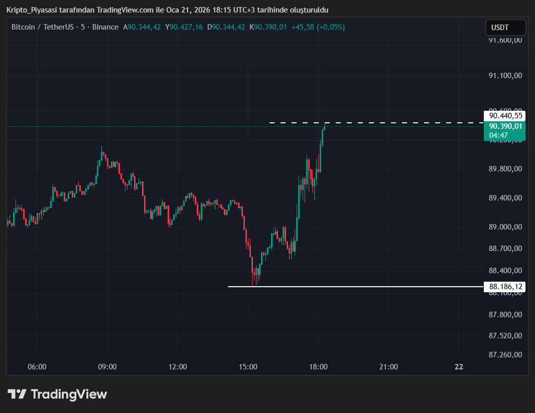Son dakikalarda ise Bitcoin fiyatının tekrardan yükselişe geçerek 90 bin doları aştığı görülüyor. ABD Başkanı Donald Trump‘ın Davos Zirvesindeki açıklamaları, bu yükselişleri tetikledi.