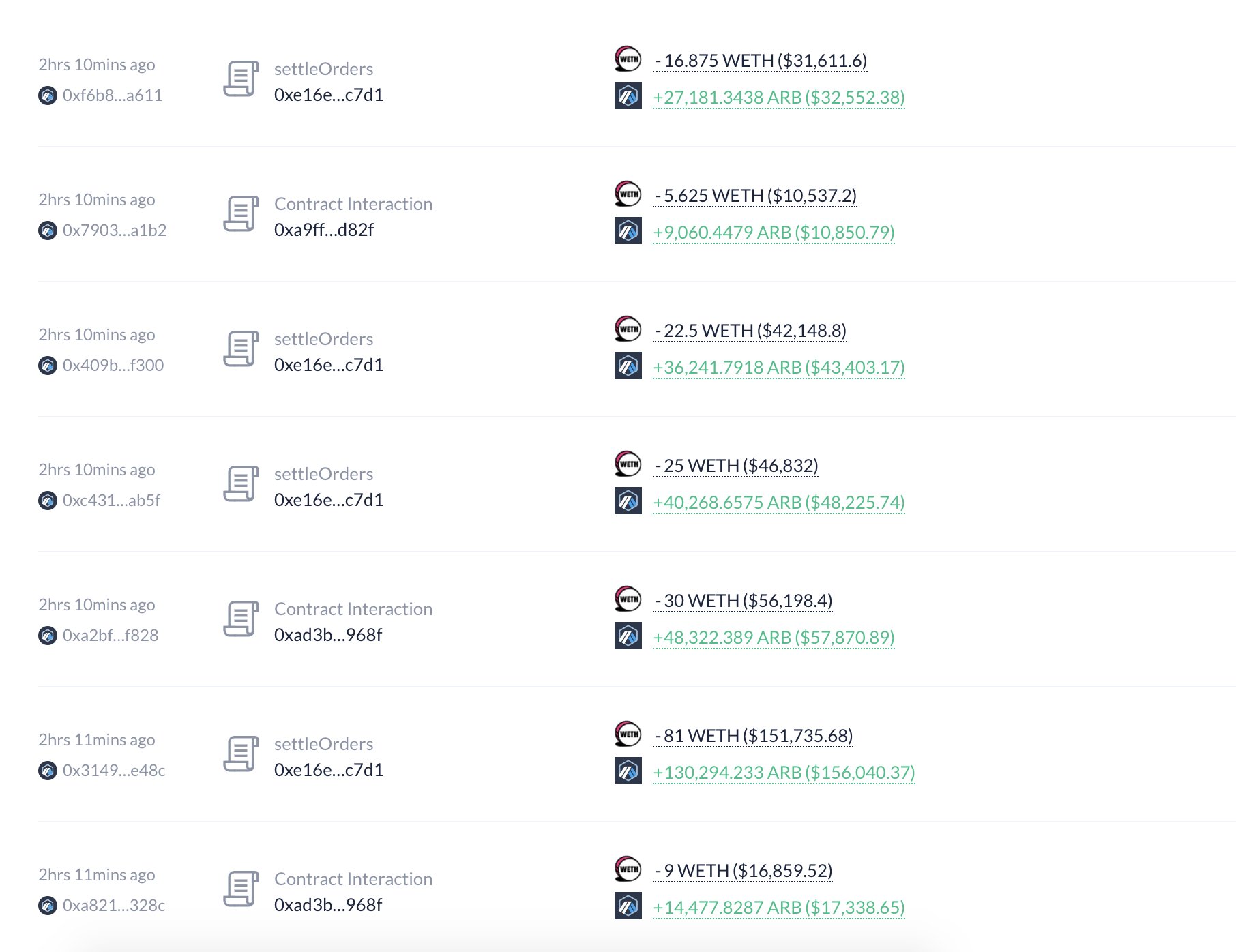 “0xb28f” isimli balina 2 saat önce yine 1,16 dolardan 321.934 adet ARB satın almak için 200 adet ETH (375 bin dolar değerinde) satışı gerçekleştirdi.”