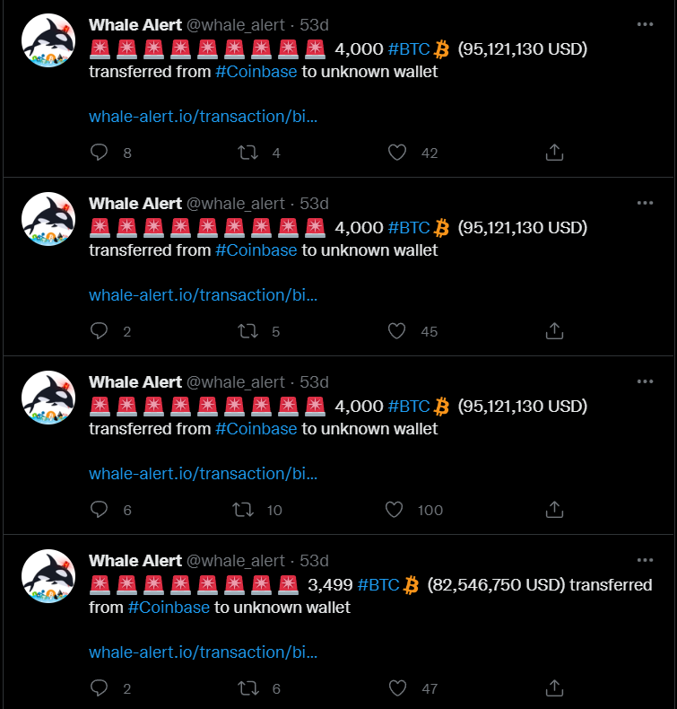 Dünyanın en büyük kripto para borsalarından bir tanesi olan Coinbase’den 15.499 adet BTC satın alan bir balina, bu ürünleri ise kısa bir süre içerisinde soğuk cüzdana çektiği gözlemlendi.
