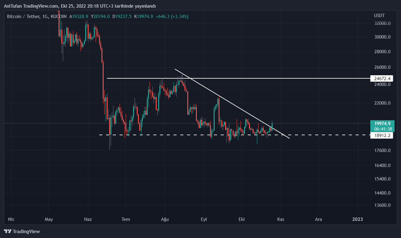 20 bin dolar seviyesinin üzerine atmayı başaran BTC, her ne kadar bu seviyelerde şimdilik kalıcı olup olmadığı bilinmese de, düşen trendin üzerinden işlem görmesi çok önemli olduğu bilinmekte.