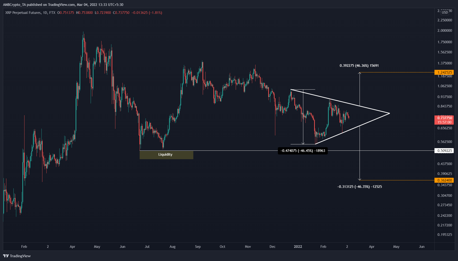 XRP, Aralık 2021’de görülen hareketliliğin aynısını sergilemeye devam ederken ilerleyen günlerdeki başlayabilecek olan hareketlilik daha önceki gibi %46’lık bir yükseliş ile sonuçlanabilir.