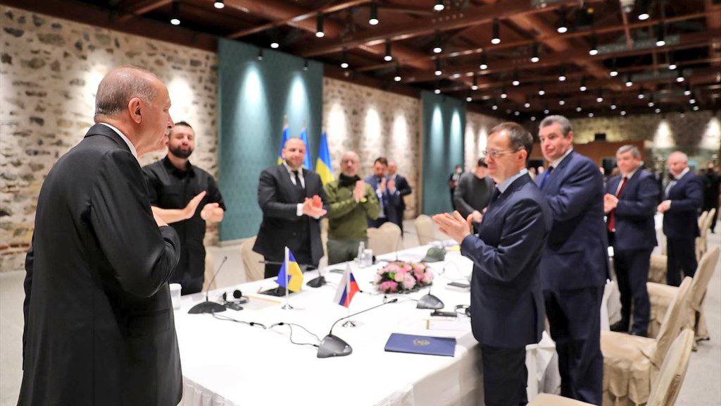 Cumhurbaşkanı Recep Tayyip Erdoğan’ın önderliğinde başlayan Rusya – Ukrayna görüşmeleri, Dolmabahçe Sarayında gerçekleşti.