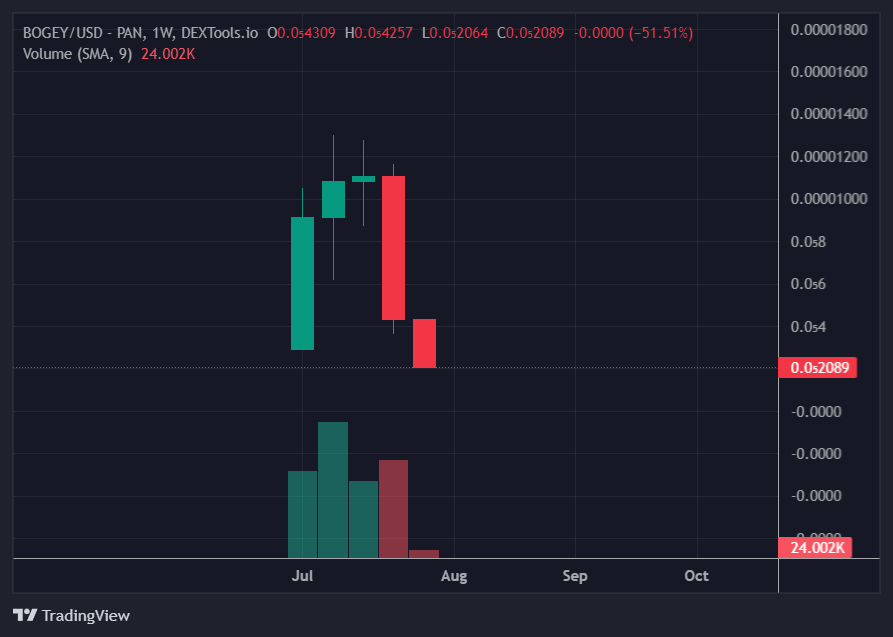 Son 24 saat içerisinde yüzde 30’dan fazla değer kaybeden BOGEY, son 2 haftalık süreçte büyük bir rug pull faciası yaşamış gibi gözükmekte.