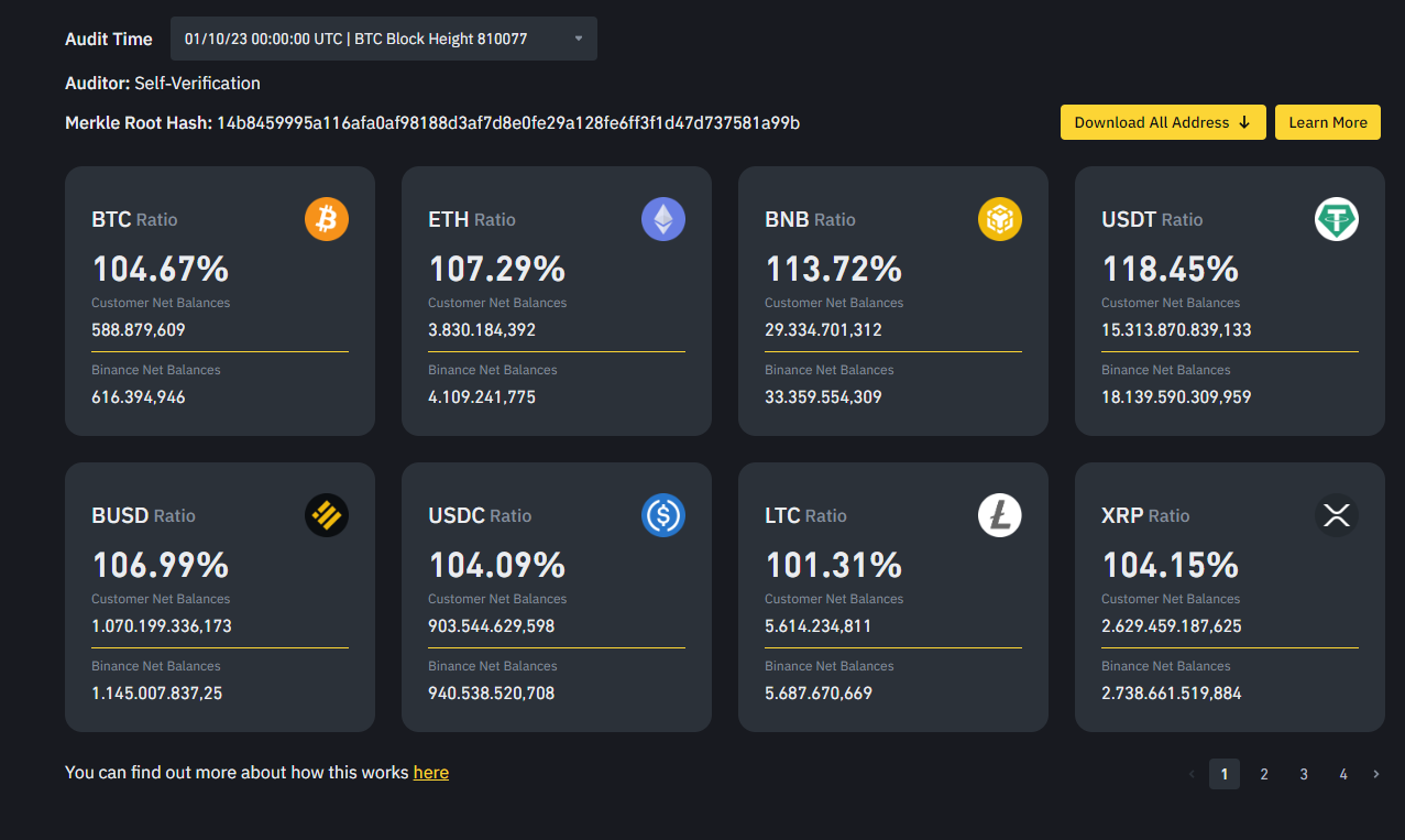 Binance on birinci rezerv kanıtını yayınladı (anlık görüntü tarihi 1 Ekim).