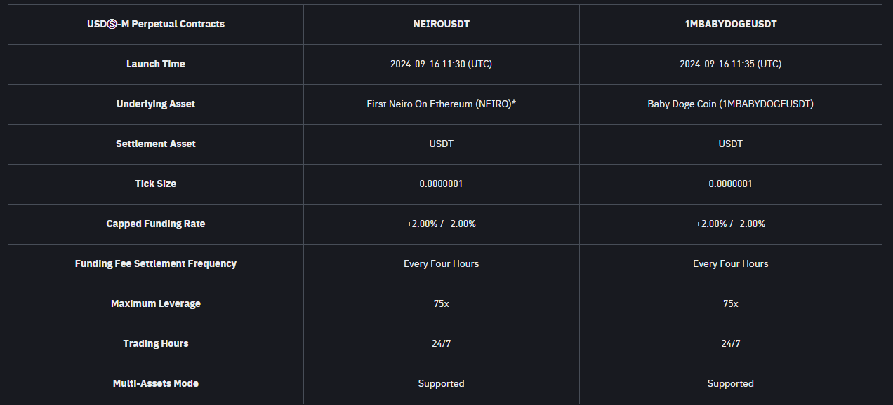 75 kata kadar kaldıraçla NEIRO ve BABYDOGE vadeli işlemleri başlatacağını açıklayan Binance, bu 2 memecoin’de ani yükselişlerin yaşanmasını sağladı.