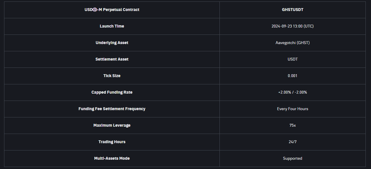Popüler kripto para borsası Binance, GHST vadeli listeleme duyurusunda başlıca şu bilgileri aktardı: