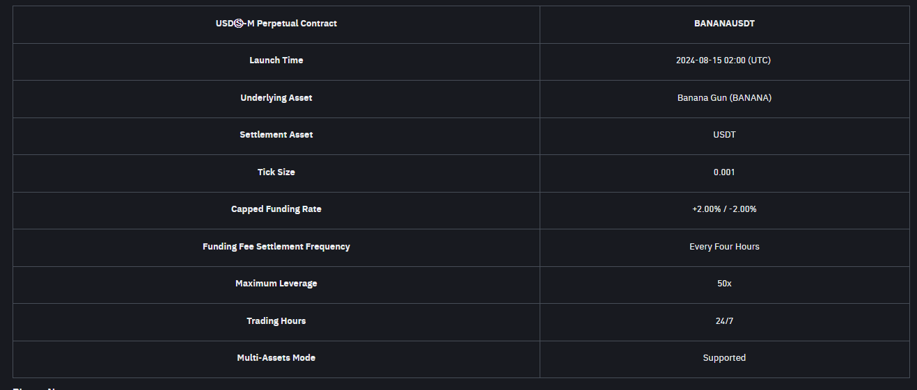 Popüler kripto para borsası Binance, BANANA’nın vadeli piyasada listelenmesi hakkında şu bilgileri aktardı: