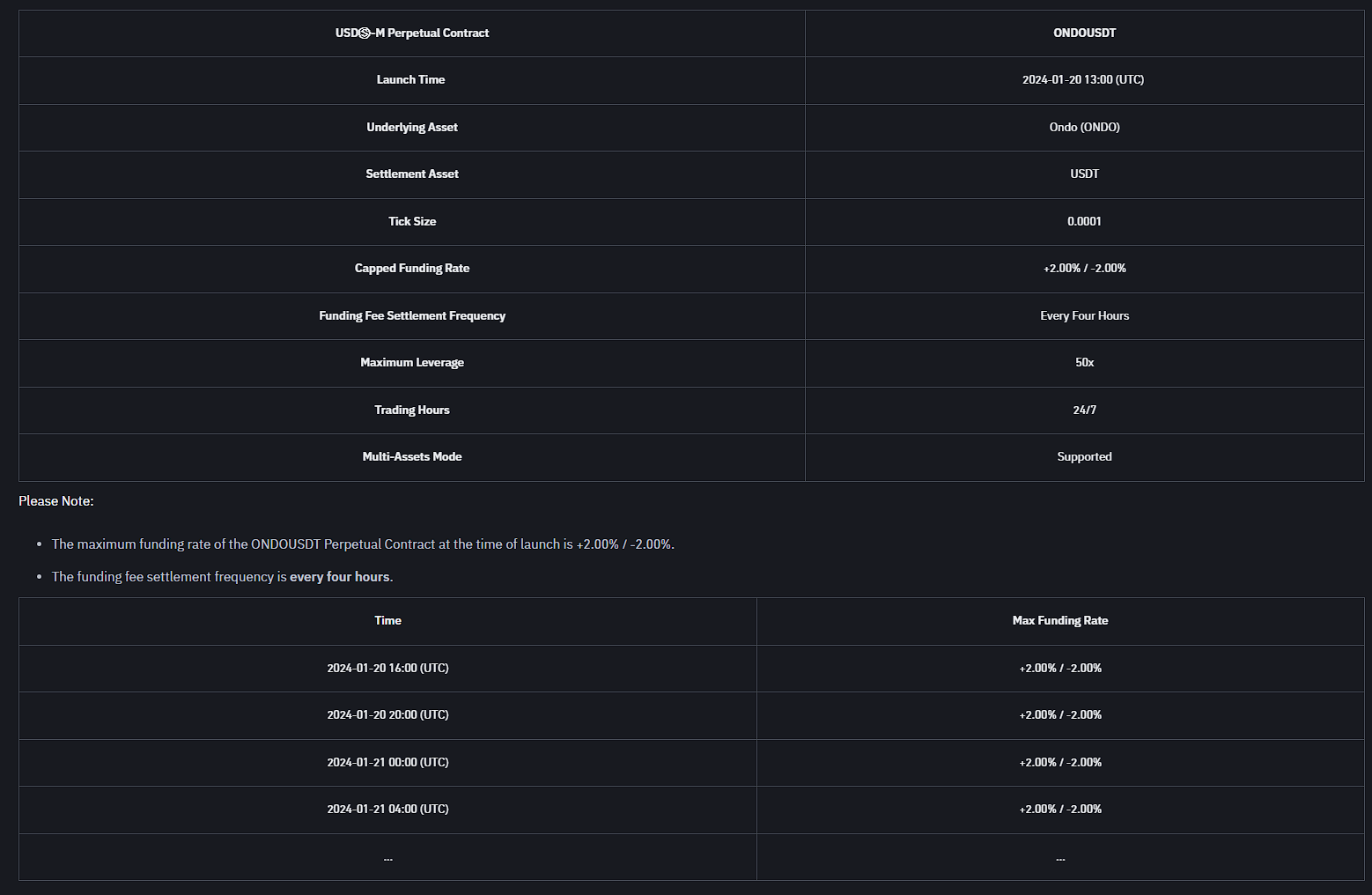 Dev kripto para borsası Binance, geçtiğimiz dakikalarda resmi internet sitesi üzerinden yeni bir duyuru paylaştı. Binance son duyuru metninde, ONDO isimli altcoin‘i 50 kaldıraçla vadeli piyasaya ekleyeceğini söylüyor.