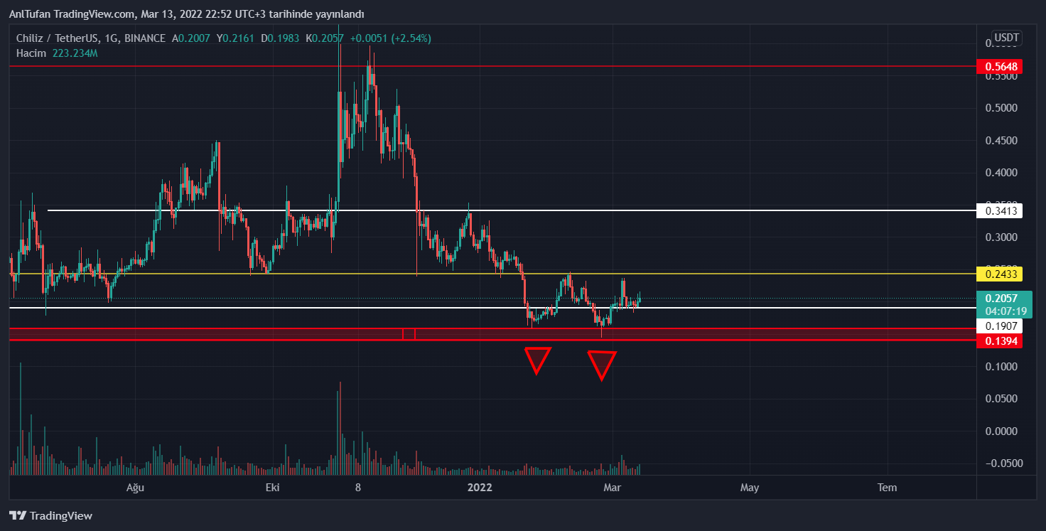0.2430 dolar direnç seviyesinin kırılmasıyla beraber kısa sürede 0.3410 dolar yükselebilecek olan CHZ, 0.20 – 0.19 dolar desteğini kaybetmesi durumunda ise düşüşe geçebilir.