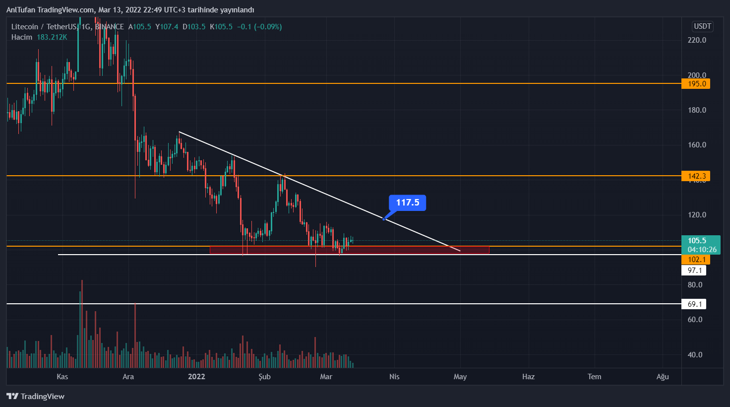 Grafik üzerinde belirttiğimiz düşen trendini kırması halinde yükselişine başlayacak olan LTC, kısa süre içerisinde 140 dolar seviyelerine kadar mini ralli yapabilir.