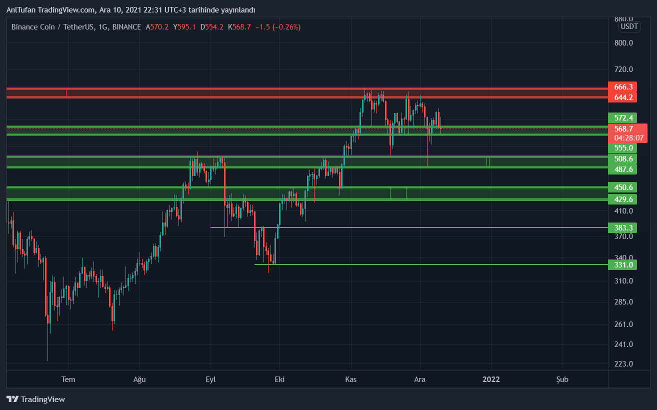 555 – 570 dolar desteğinden yükselmeye başlaması durumunda 644 – 666 dolar direncine kadar yükselmesi beklenen BNB, bu seviyeyi de kırması halinde yükselişin sertleşerek devam etmesi beklenmekte.