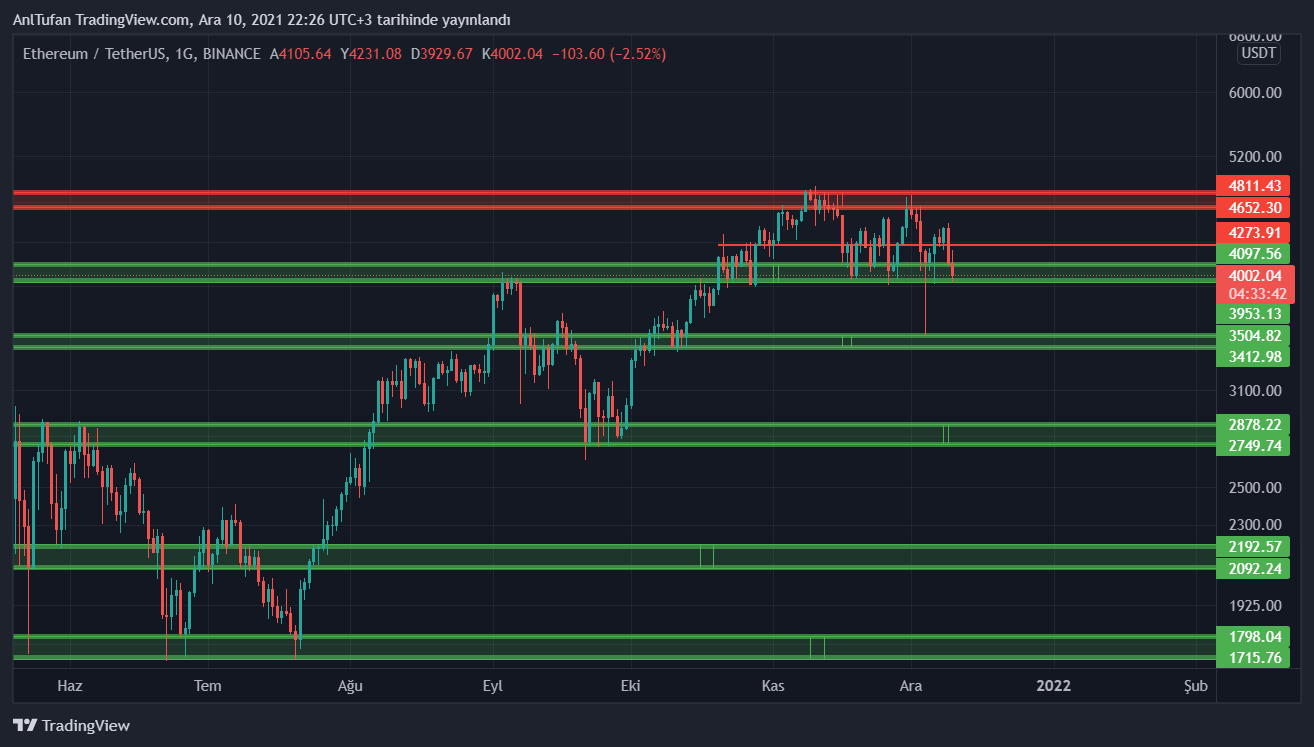 4273 dolar ara direnci üstünde kalmayı başarırsa 4650 – 4800 dolar major direncine yükselebilecek olan ETH, bu direnç kırılımında yeni rekor seviyelere ulaşması bekleniyor.