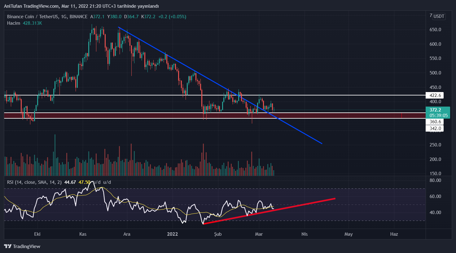 350 – 360 dolar desteğinin üzerinde tutunmayı başaran Binance Coin, bu desteğini yitirmesi halinde sert düşüşler yaşayabilir.