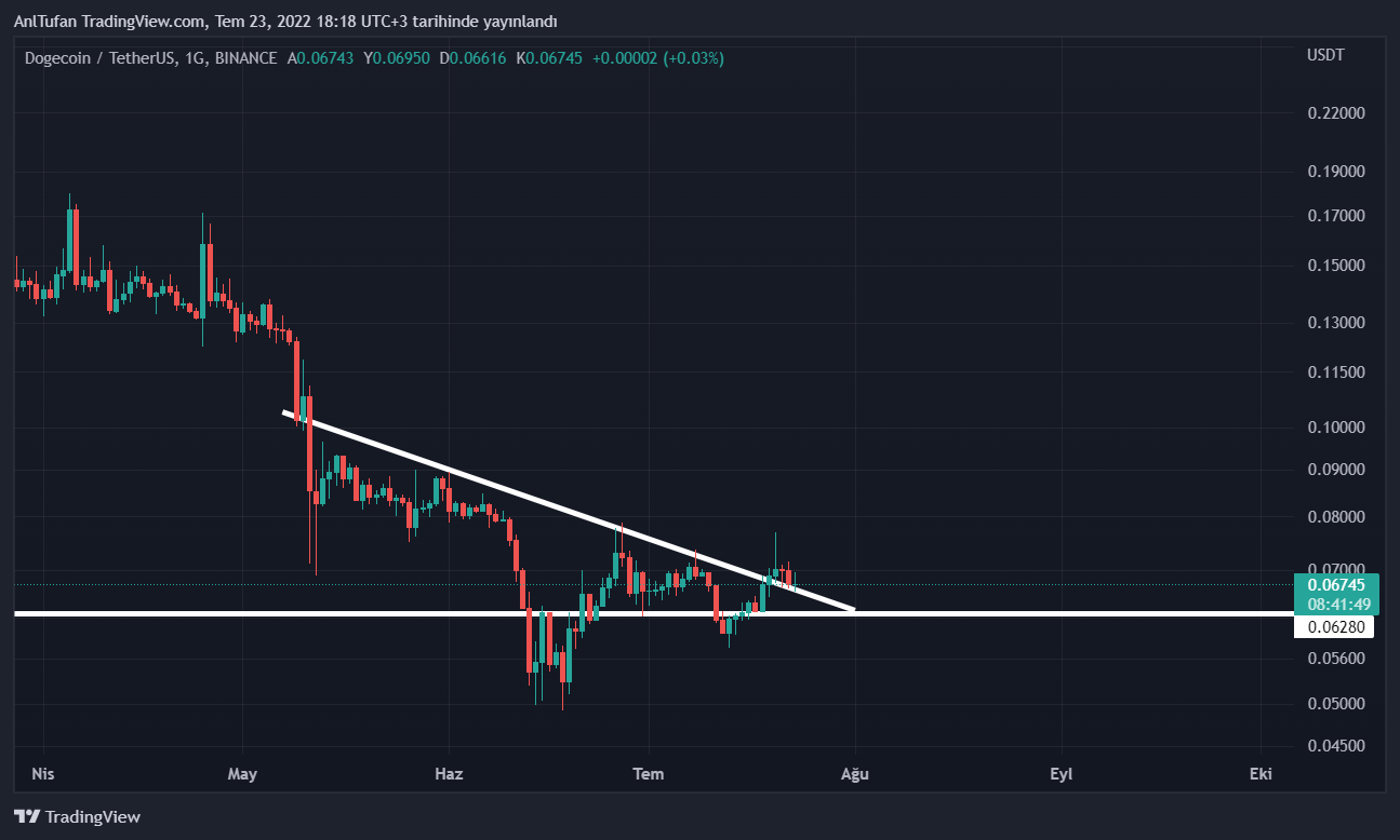 Haberimizin yazıldığı esnada 0.067 dolar seviyelerinden işlem gören Dogecoin (DOGE), halen düşen trendin üzerinde yer alıyor.