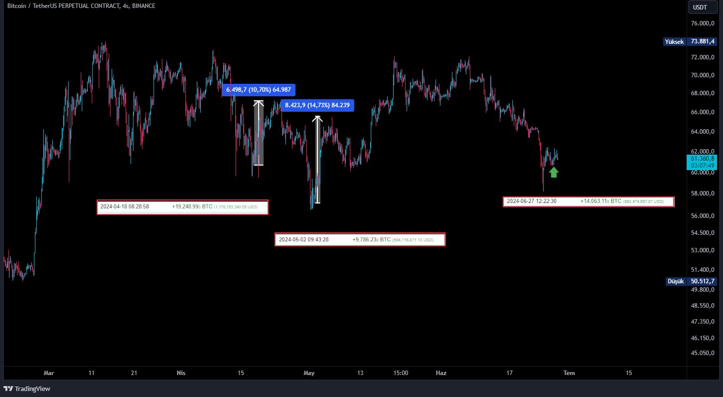 Okurlarımızın bu transferler sonrasındaki Bitcoin yükselişlerinin bir tesadüf de olabileceğini unutmamaları gerekiyor. Transferler sonrasında BTC hareketlerini merak eden okurlarımız, Anl Cnc’nin paylaştığı aşağıdaki grafiği inceleyebilir: