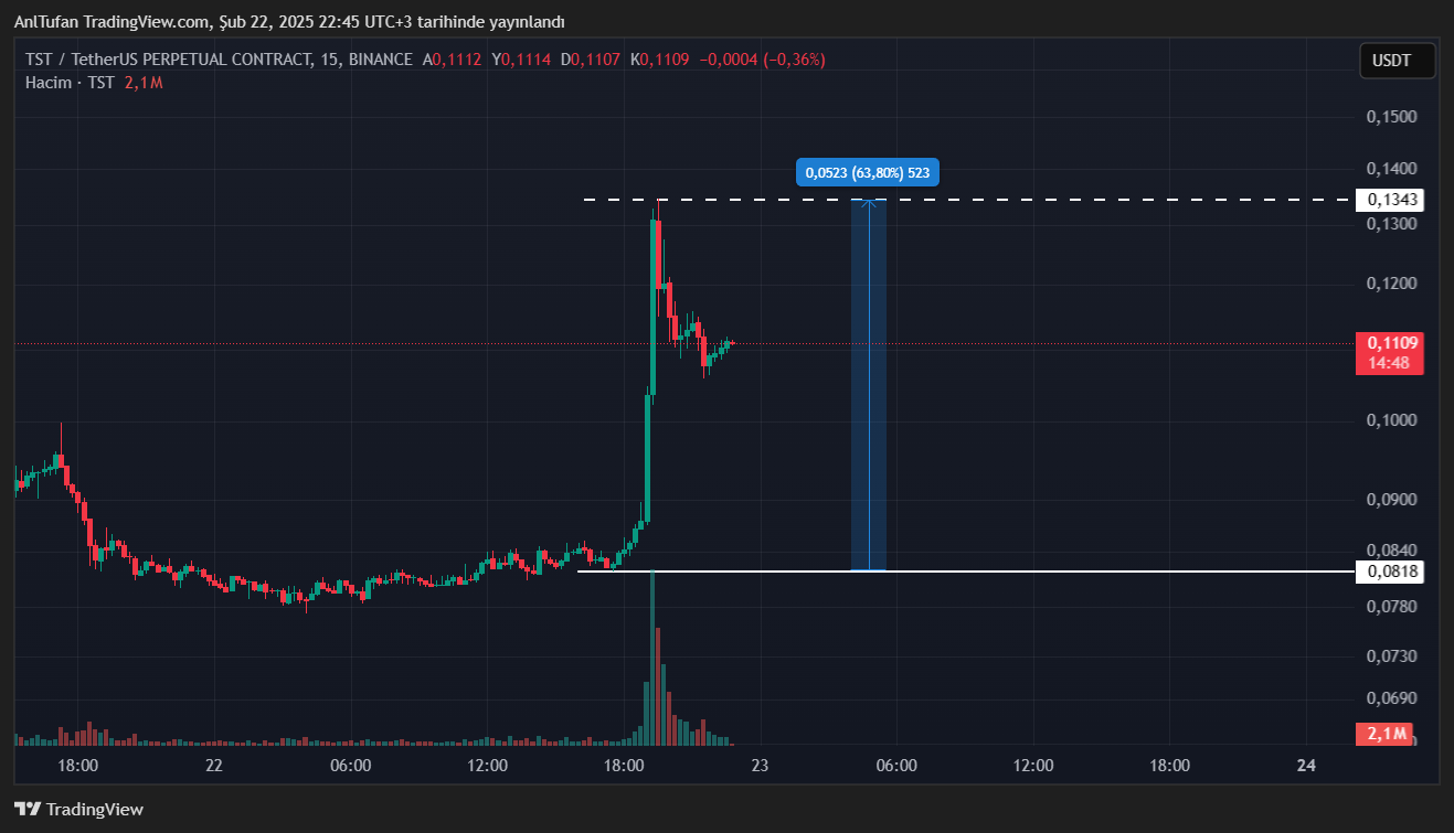 Binance kurucusunun bu hamlesi ile birlikte TST fiyatında ciddi bir sıçrama meydana geldi. Dakikalar içerisinde 0.0818 dolardan 0.134 dolara yükselen TST, yatırımcıların dikkatini çekti.