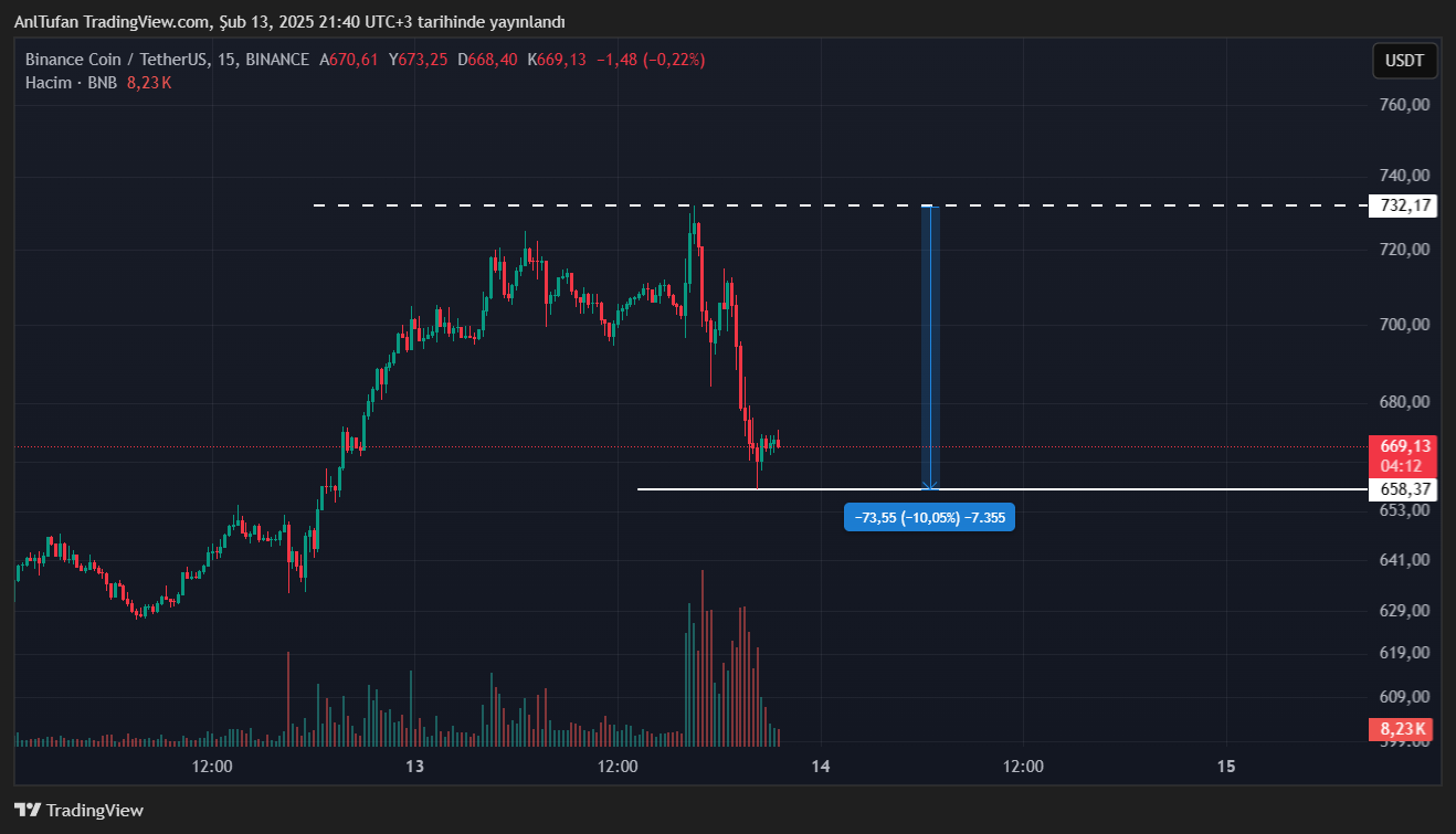 Başarılı yönetici CZ’nin bu açıklamalarına rağmen BNB üzerindeki satış baskısının artmaya devam ettiği görüldü. BNB, CZ’nin köpekli paylaşımının hemen ardından 732 dolara kadar yükselse de, sonrasında gelen tepkiler ile birlikte bir anda 658 dolara kadar geriledi.