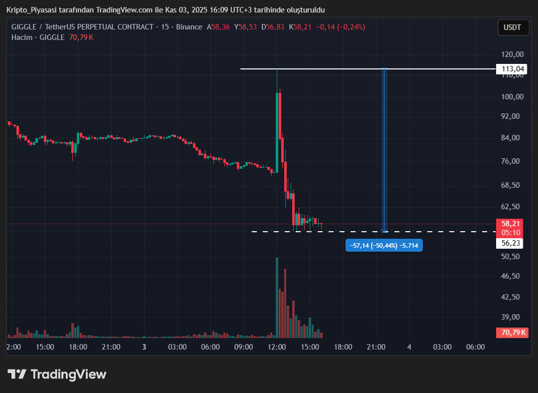 Paylaşımın hemen ardından GIGGLE fiyatında çok sert yükseliş oldu. Binance kurucusu CZ’nin GIGGLE’dan bahsetmesi, bu memecoin‘in %50’lik sıçrama yapmasını sağladı.