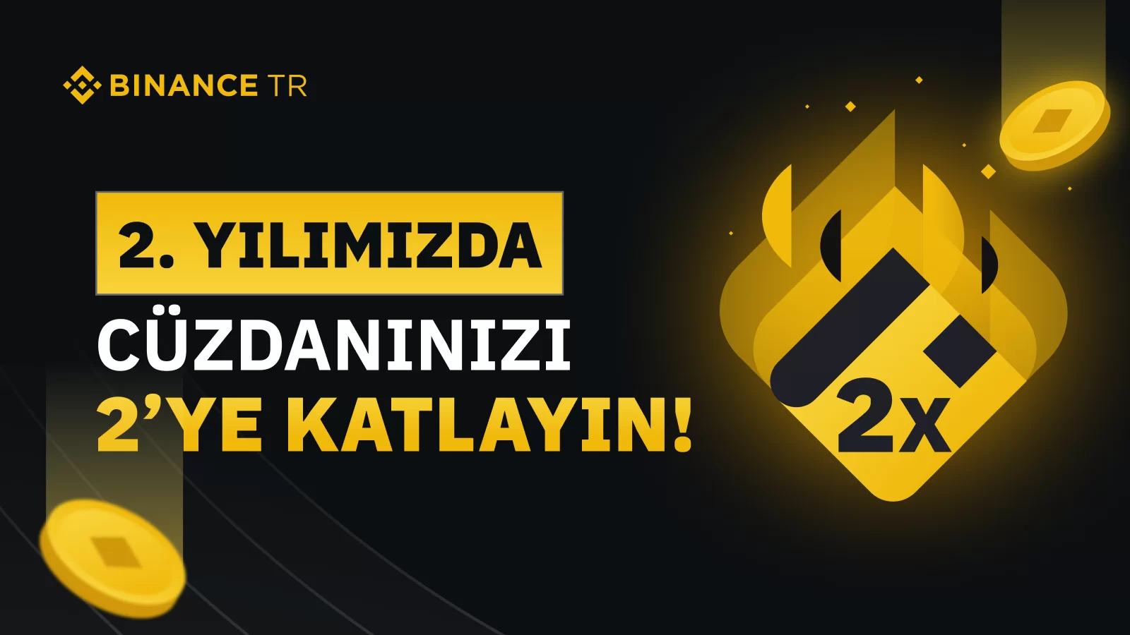 “Binance TR, 2. yıl dönümü şerefine topluluğumuz için eşsiz bir etkinlik sunuyor. Etkinlik dönemi boyunca 3 gün alım-satım yapan şanslı kullanıcılar, cüzdanlarını ikiye katlama şansı elde edecek!”