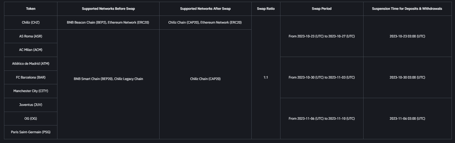Binance, Chiliz (CHZ) 2.0 ana ağ entegrasyonunu tamamladı . Chiliz (CHZ) 2.0 ana ağ değişimi artık aşağıdaki zaman çizelgesine göre ilerleyecek: