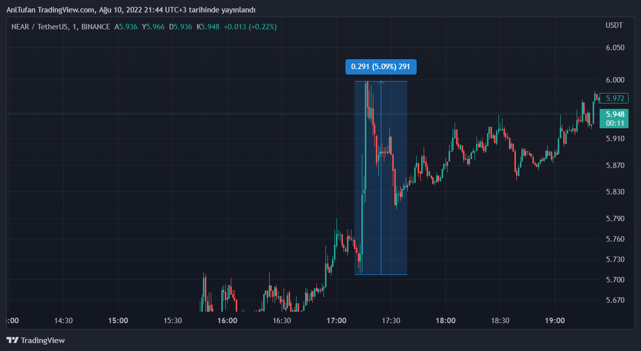 Coinbase‘in NEAR‘ı yol haritasına eklemesinin ardından yüzde 5’e varan değer kazanan popüler altcoin, son saatlerde ise Bitcoin‘in düşüş yaşamasıyla birlikte tekrardan değer kaybettiği gözlenmekte.