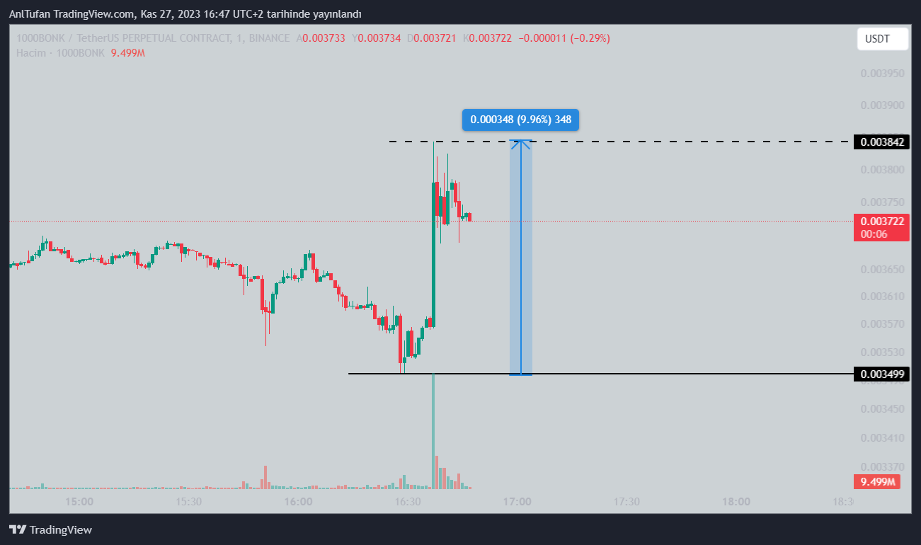 Geçtiğimiz dakikalarda Bonk ekibinin paylaşımı sonrasında popüler şaka tokeni yükselişe geçti. BONK, kripto piyasasında satışlar hakimken dakikalar içerisinde %10’luk bir artış yaşadı.