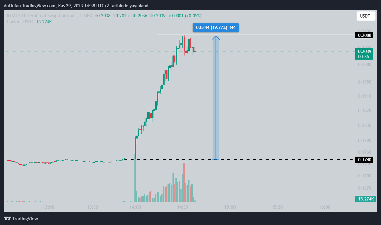 Bu gelen haberin ardından popüler altcoin %20’lik bir yükseliş yaşamayı başardı. IOTA halen zirve seviyelerde işlem görmeye devam ediyor.