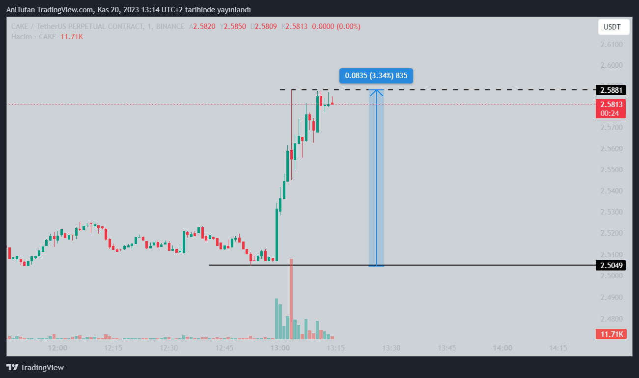 PancakeSwap’ın (CAKE) son dakikalardaki hareketlerine göz attığımızda, bullish hamleler sergilediği görülüyor. Her ne kadar CAKE bu tweet sonrasında dev bir sıçrama gerçekleştirmese de, ufak artışlar yaşadı.