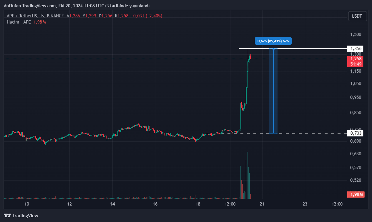 Ape blok zinciri üzerindeki şaka altcoin’lerine yatırım yapan bazı memecoin tüccarları, APE satın alımları gerçekleştirdi ve APE’nin tekrardan eski günlerdeki gibi volatil yükseliş yaşamasını tetikledi.