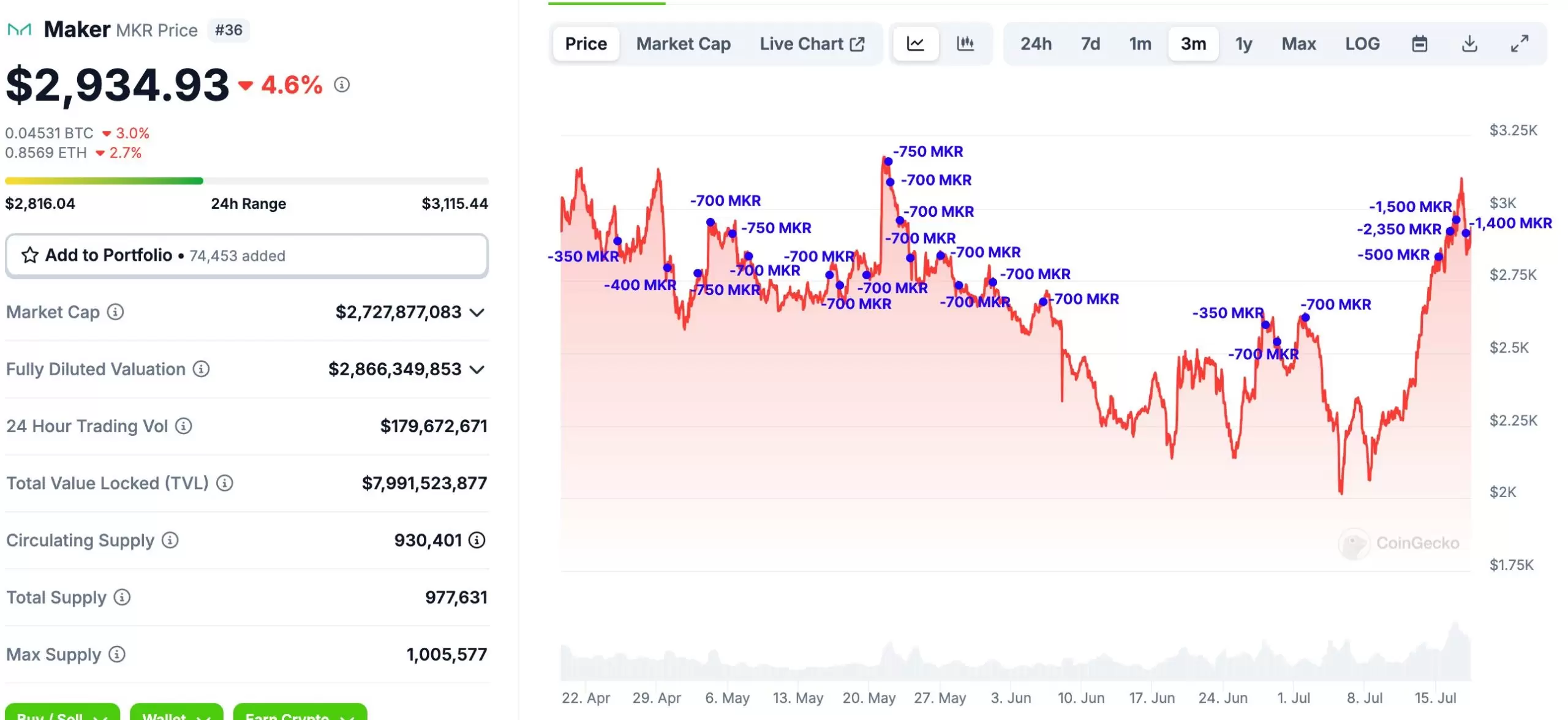 Başarılı veri sağlayıcısı olan Look On-Chain, Binance‘de listelenmiş bir altcoin olan Maker‘da (MKR) yüklü satışların yapıldığını tespit etti ve X/Twitter hesabı üzerinden şu bilgileri aktardı: