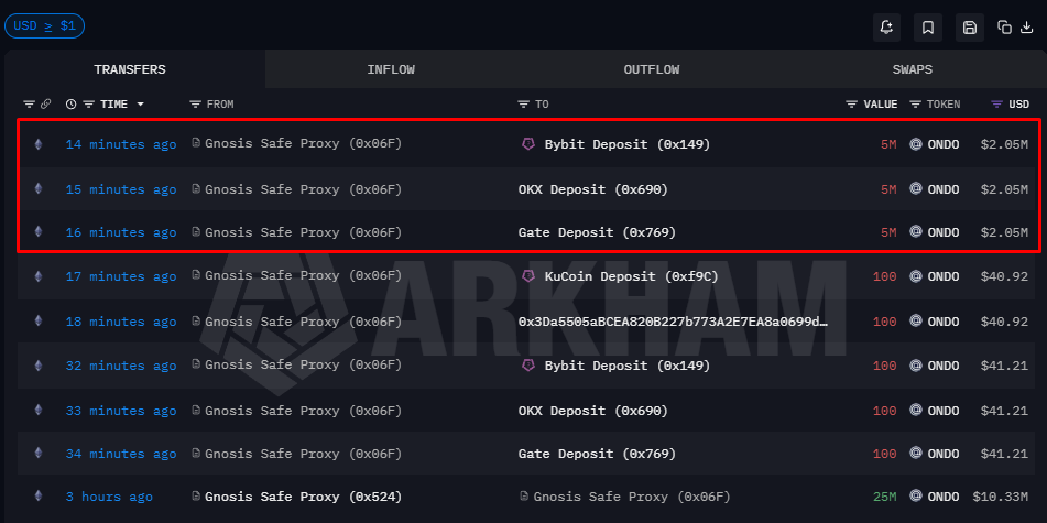 Zincir üstü veri uzmanlarının yorumlamalarına göre tokenler genellikle satış için borsalara gönderiliyor. Ondo Finance ekibinin ONDO satışı yapması da, projeyi olumsuz etkileyebilir.