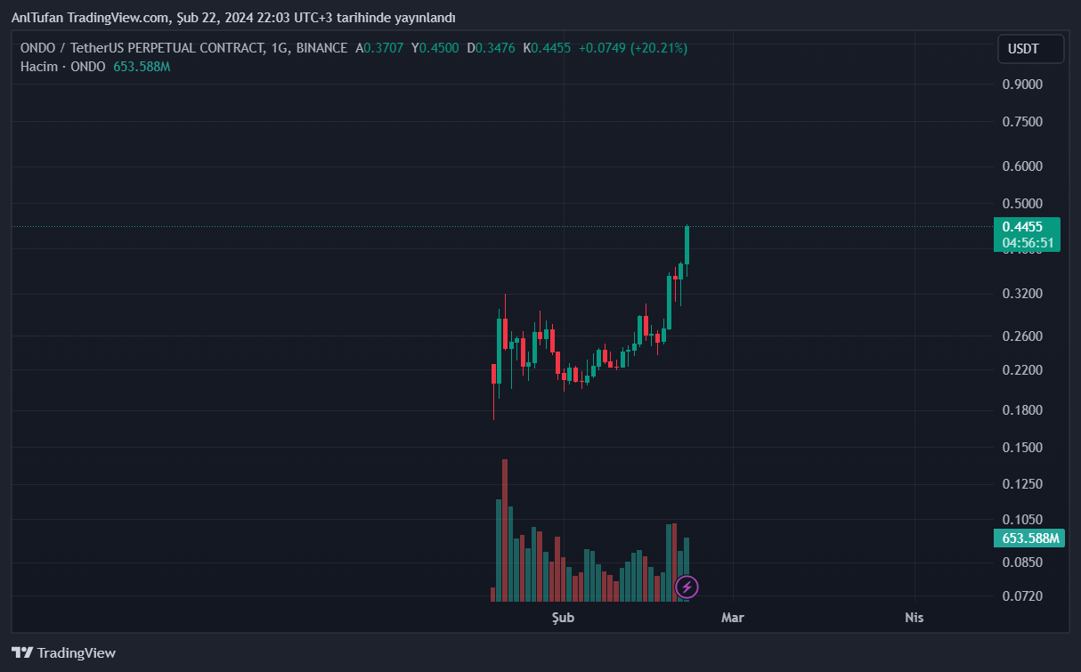 Son 5 gün içerisinde %90’lık bir yükseliş yaşayan ONDO, bugün itibariyle ise %20’den fazla değer kazanmayı başarmış durumda.