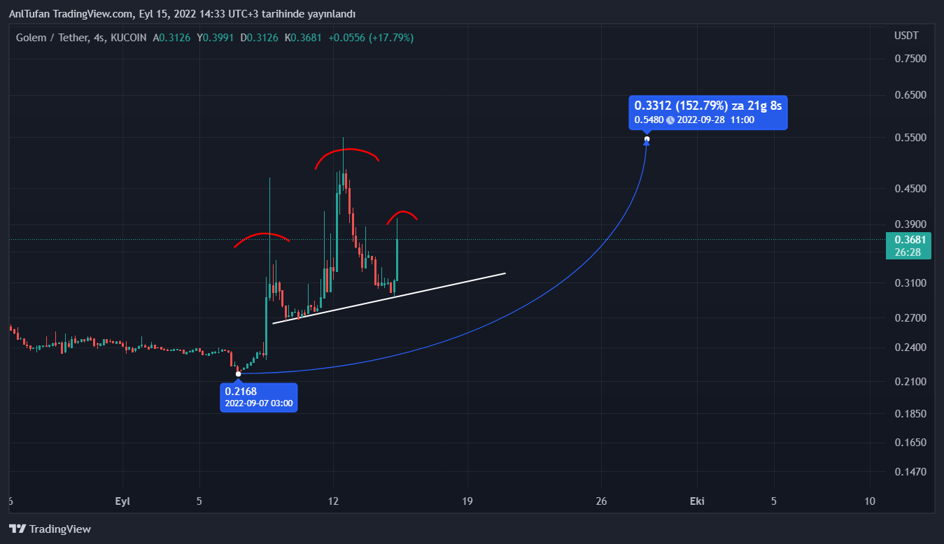 Bu boyun çizgisinin kırılmasıyla birlikte çok daha sert düşüşler yaşayabilecek olan Golem, tekrardan 0.21 dolar seviyelerine kadar gerileyebilir.
