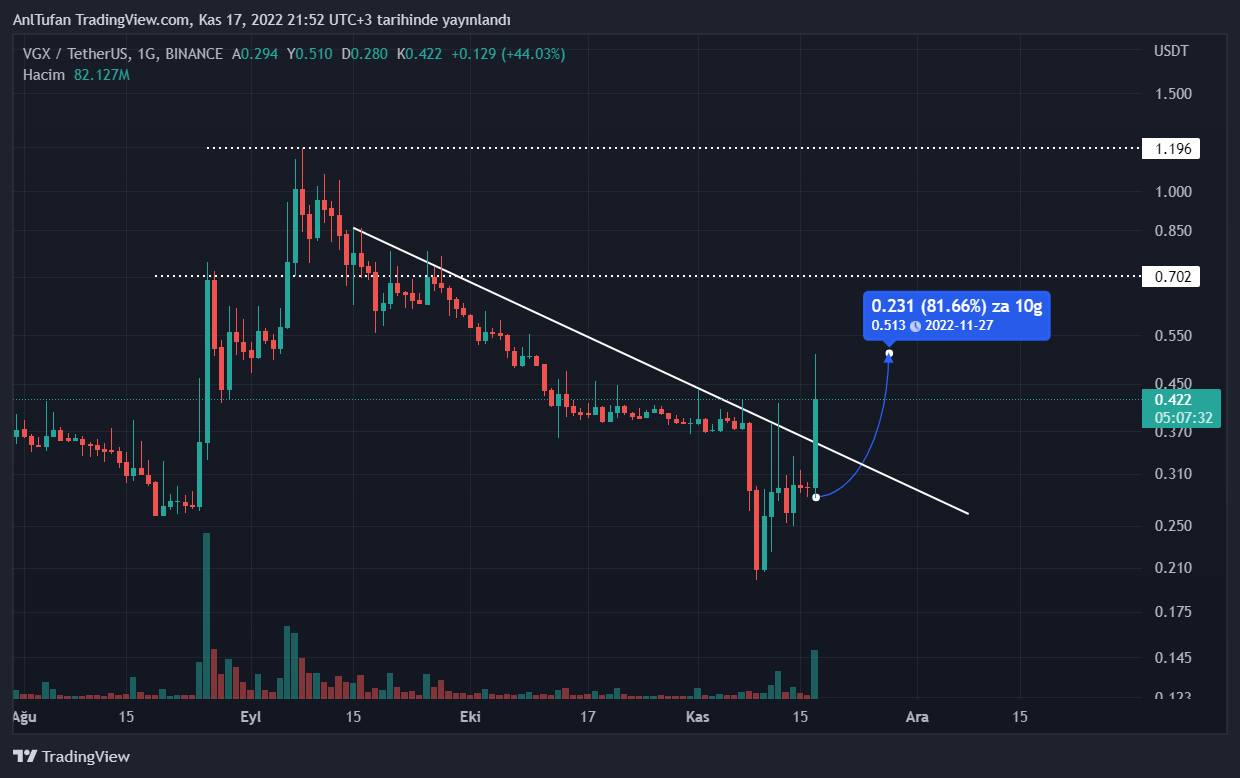 An itibariyle her ne kadar VGX yüzde 15’lik bir geri çekilme yaşamış olsa da, ilerleyen saatlerde yeni yükselişler başlatabilir.