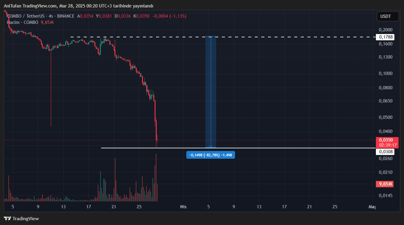 An itibariyle Binance’de işlem görmeye devam eden COMBO, bugün özelinde -%50 oranında değer kaybetti. COMBO‘daki son günlerdeki düşüşler, bugünkü çöküş ile -%80’i aşmış durumda.